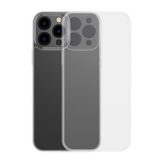 Baseus Frosted Glass Case etui pokrowiec do iPhone 13 Pro Max sztywna obudowa z żelową ramką przezroczysty (ARWS000202)