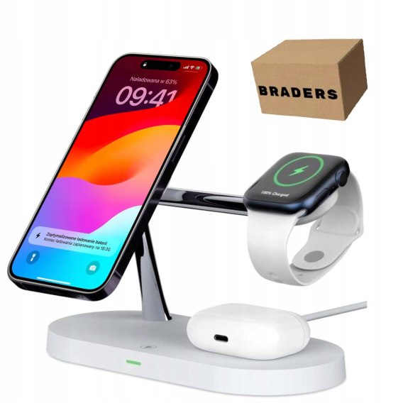 Biała ładowarka indukcyjna 3w1 MagSafe Qi do iPhone, Watch, AirPods