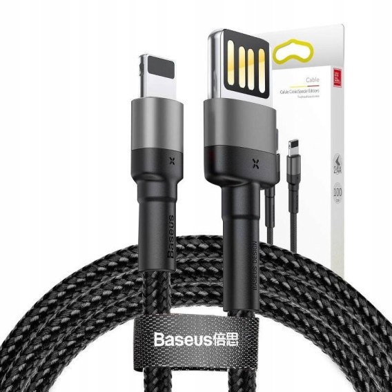 Długość kabla Baseus wynosi 100 cm a maksymalne natężenie wyjściowe 2,4 A. Przewód zapewnia komfort użytkowania oraz wysoką funkcjonalność. Pozwala na ładowanie oraz transfer plików pomiędzy urządzeniami wyposażonymi w wejście USB, oraz urządzeniami wyposażonymi w wejście Lightning. Dwustronny wtyk USB pozwala na uniknięcie błędnego wpięcia w gniazdo.