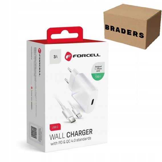 Forcell szybka ładowarka sieciowa USB Typ C 20W 3A QC 4.0 + kabel Lightning