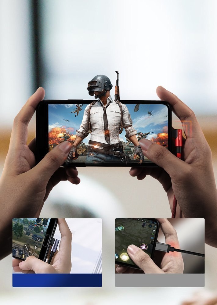 Kabel pod kątem graczy - Ergonomiczny design, umieszczonej pod kątem 90 stopni wtyczki, sprawia, że akcesorium naturalnie wpasowuje się w krzywiznę dłoni, a co za tym idzie pozwala wygodnie trzymać telefon. Z tym przewodem możesz ładować smartfona, całą uwagę skupiając na wirtualnej rywalizacji. Ponadto końcówka jest odporna na ścieranie i utlenianie.