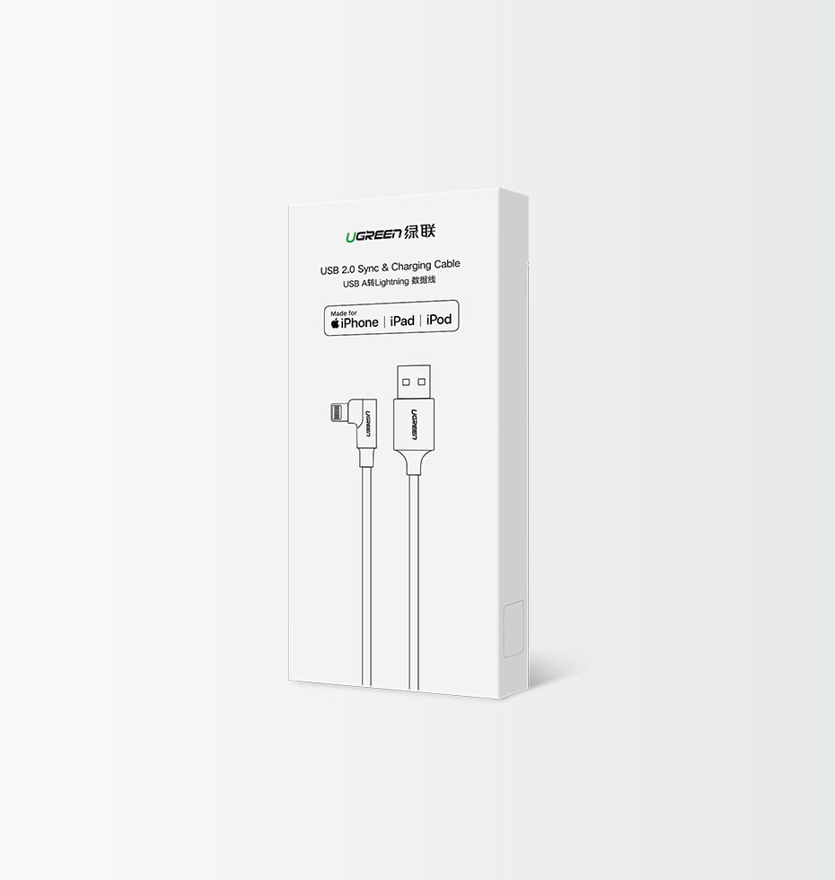 Ugreen kątowy kabel przewód USB - Lightning MFI 1m 2,4A
